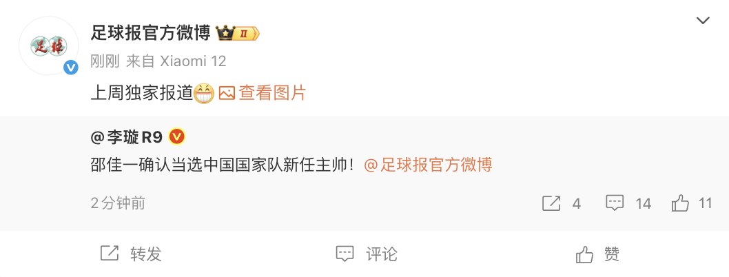 6686体育官网11月5日讯 据《足球报》 报道,前中国男足国脚、助教&现青岛西海岸主帅邵佳一确认当选中国男足主帅。