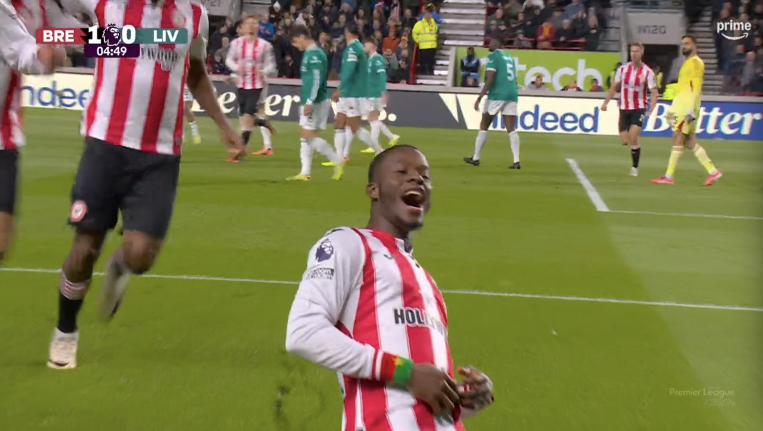 利物浦对阵布伦特福德(5分钟布伦特福德进球)