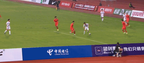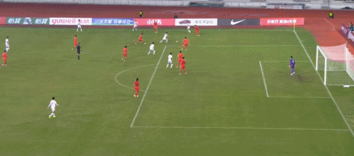 33’中国队左路输送威胁传禁区,门前包抄球员慢了一步