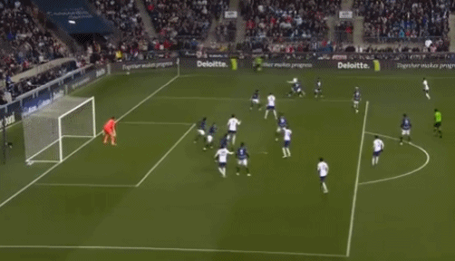 67’稍稍高出!德斯特三秒区外突施冷箭,皮球擦着门楣出了端线
