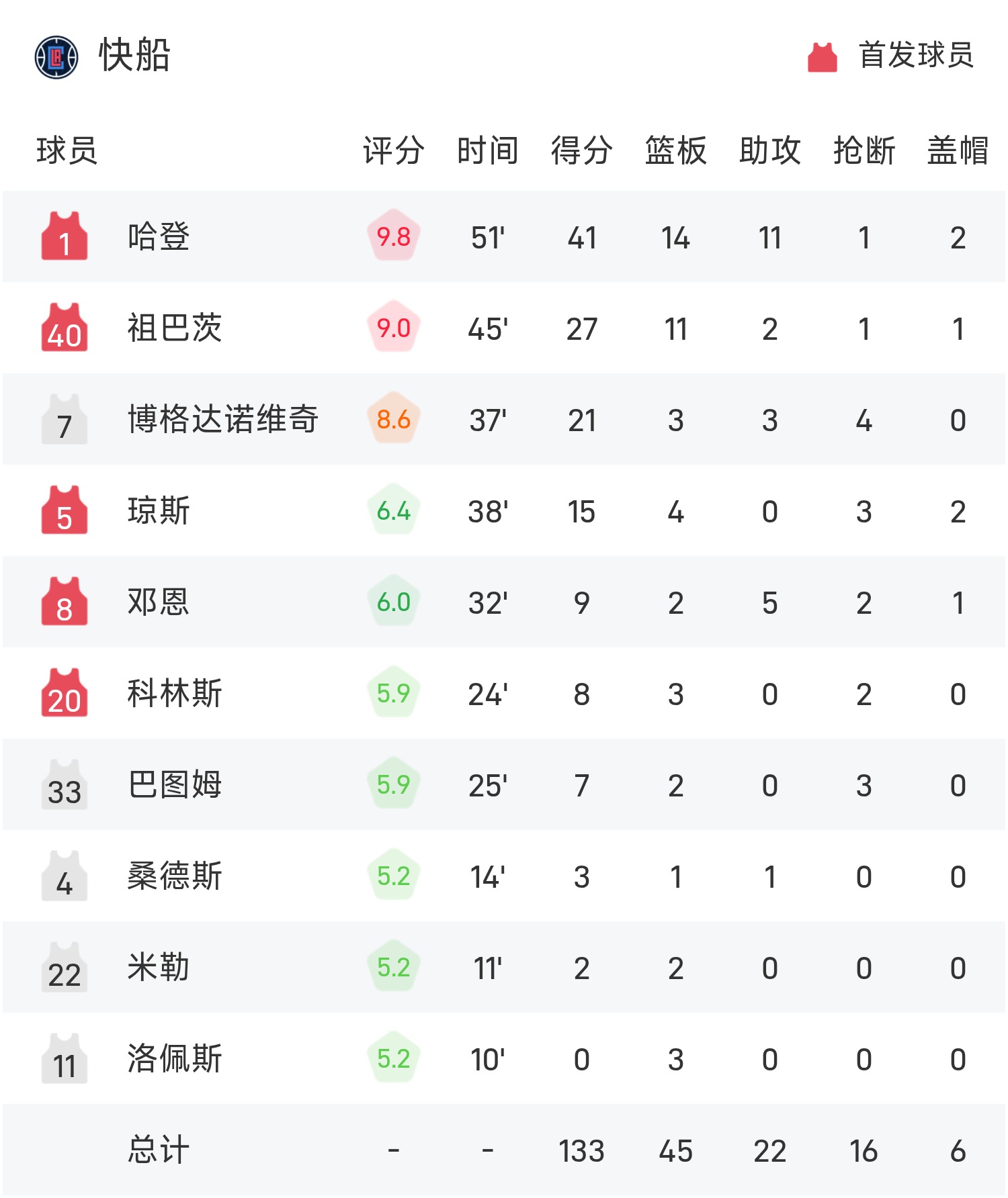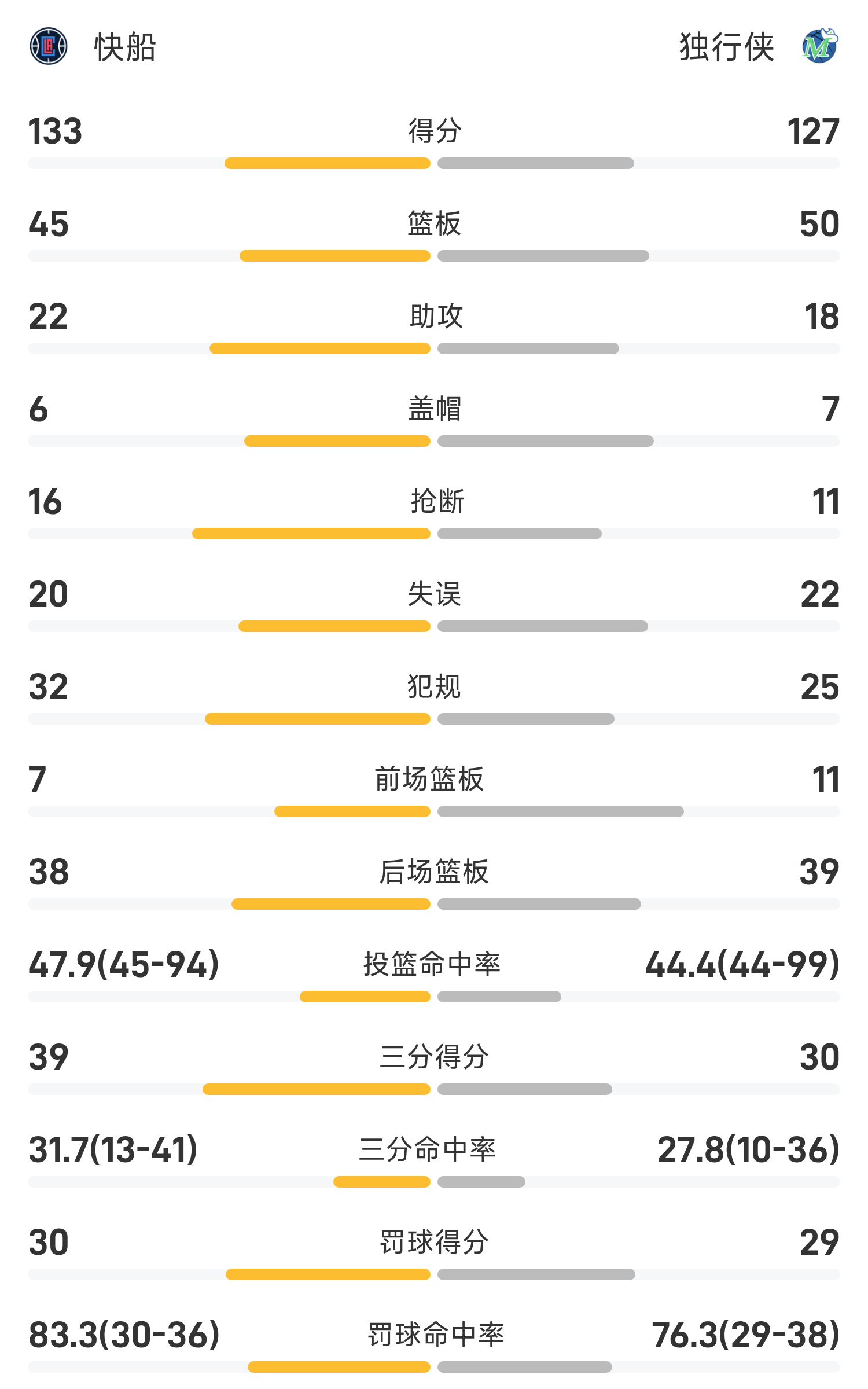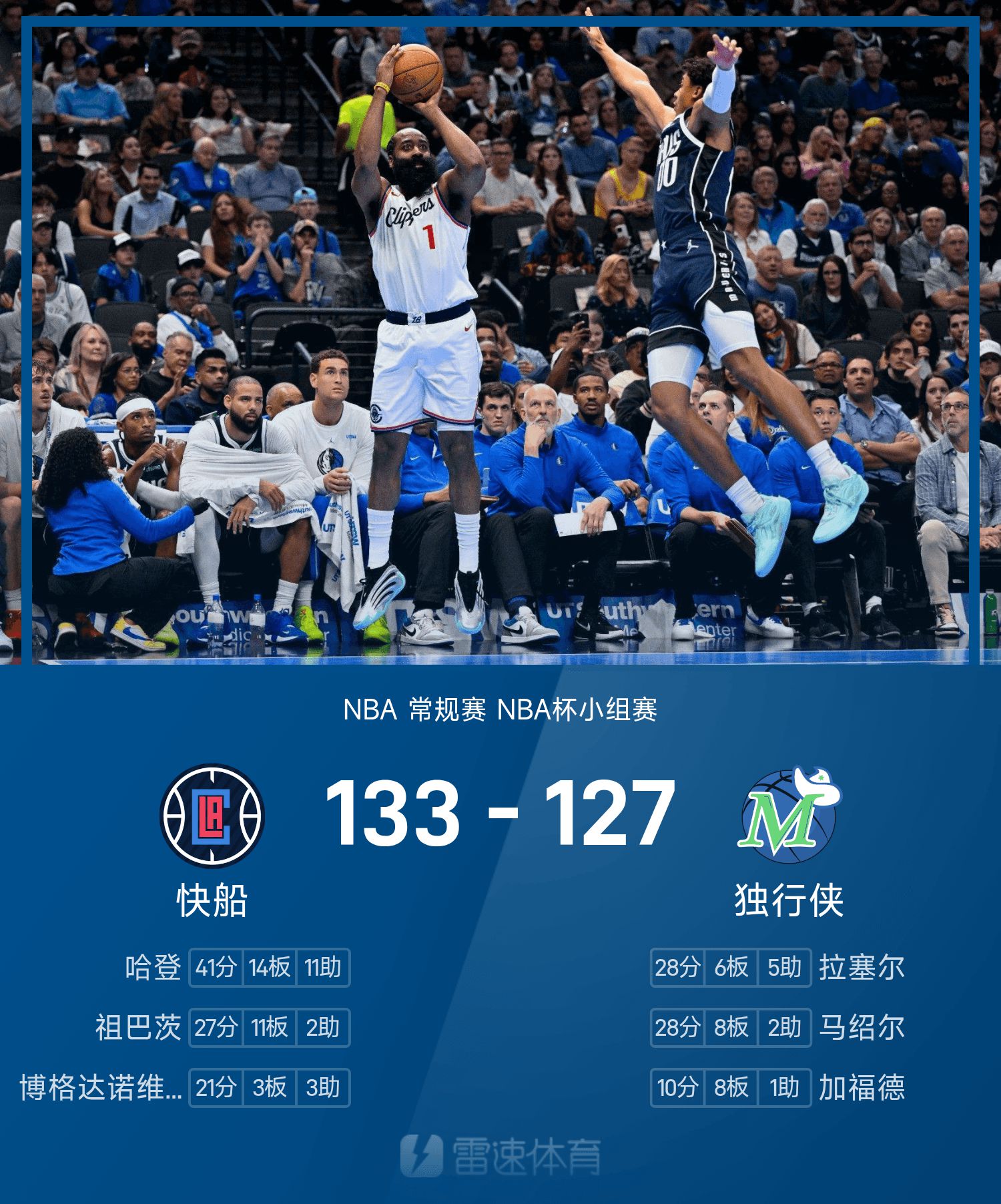 NBA杯战报:哈登41分三双,快船133-127双延长赛击败独行侠