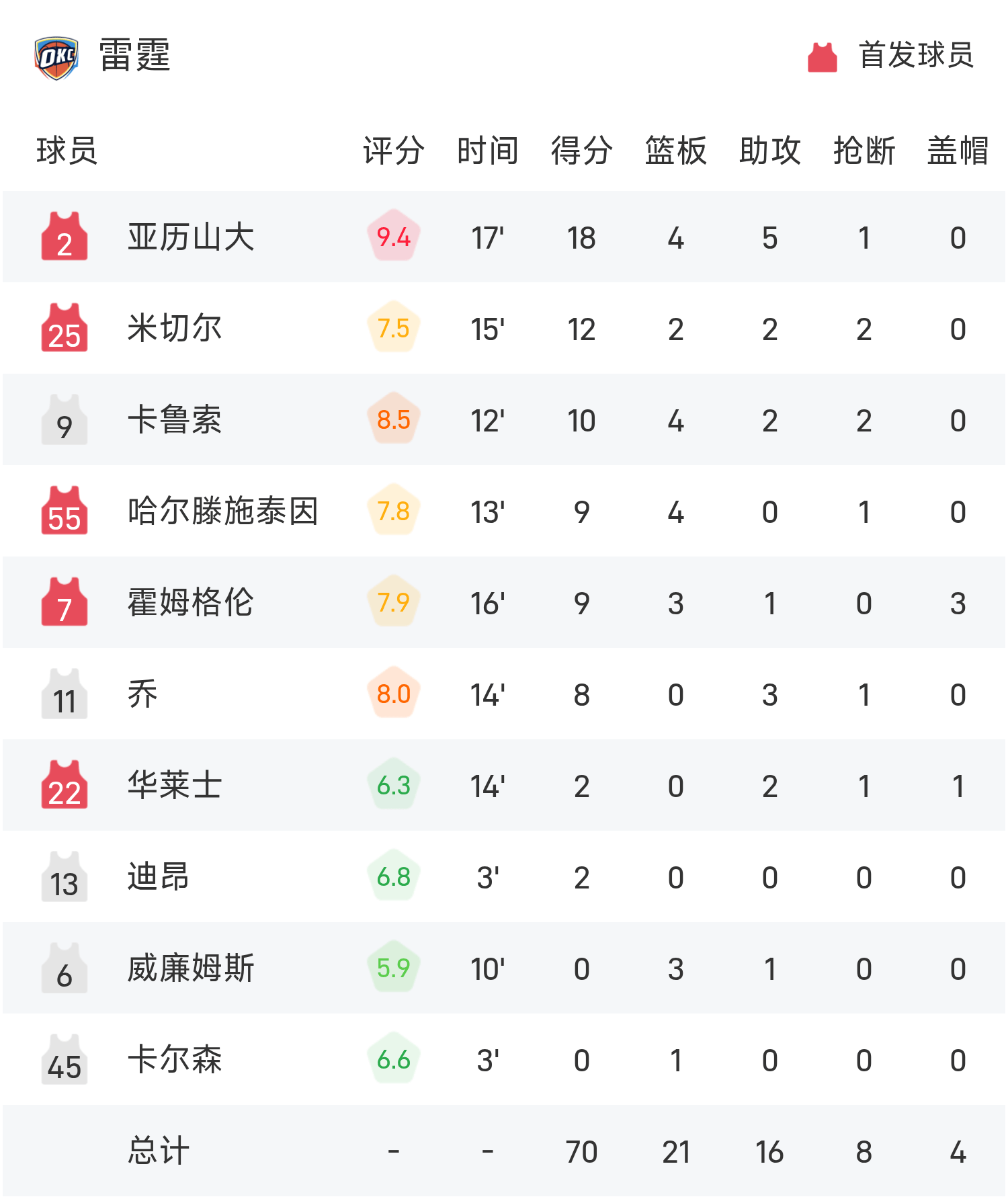 NBA半场:SGA18分,东契奇11分,雷霆70-38领跑位湖人