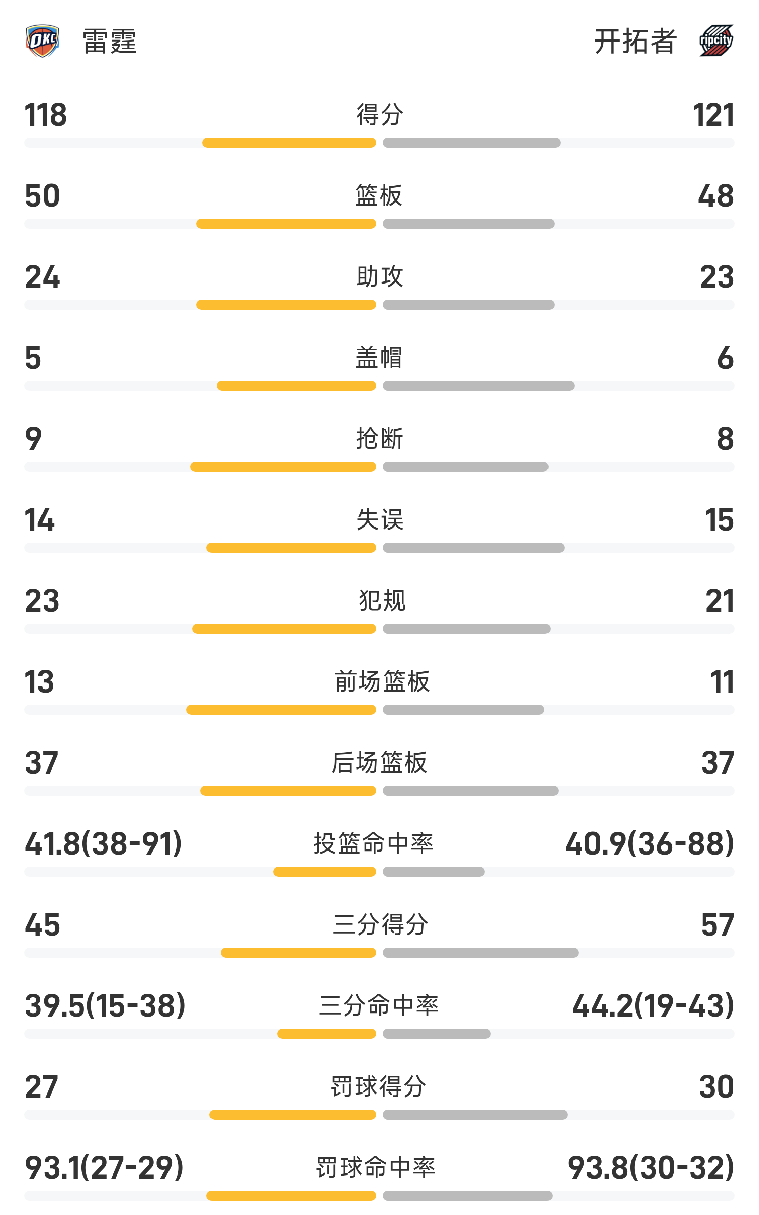 6686体育官网11月06日讯 25/26赛季NBA 常规赛,开拓者对阵雷霆。双方全场战罢,开拓者121-119战胜雷霆。阿夫迪亚得到26分10板9助率队取胜,亚历山大空砍全场最高的35分9板4助。